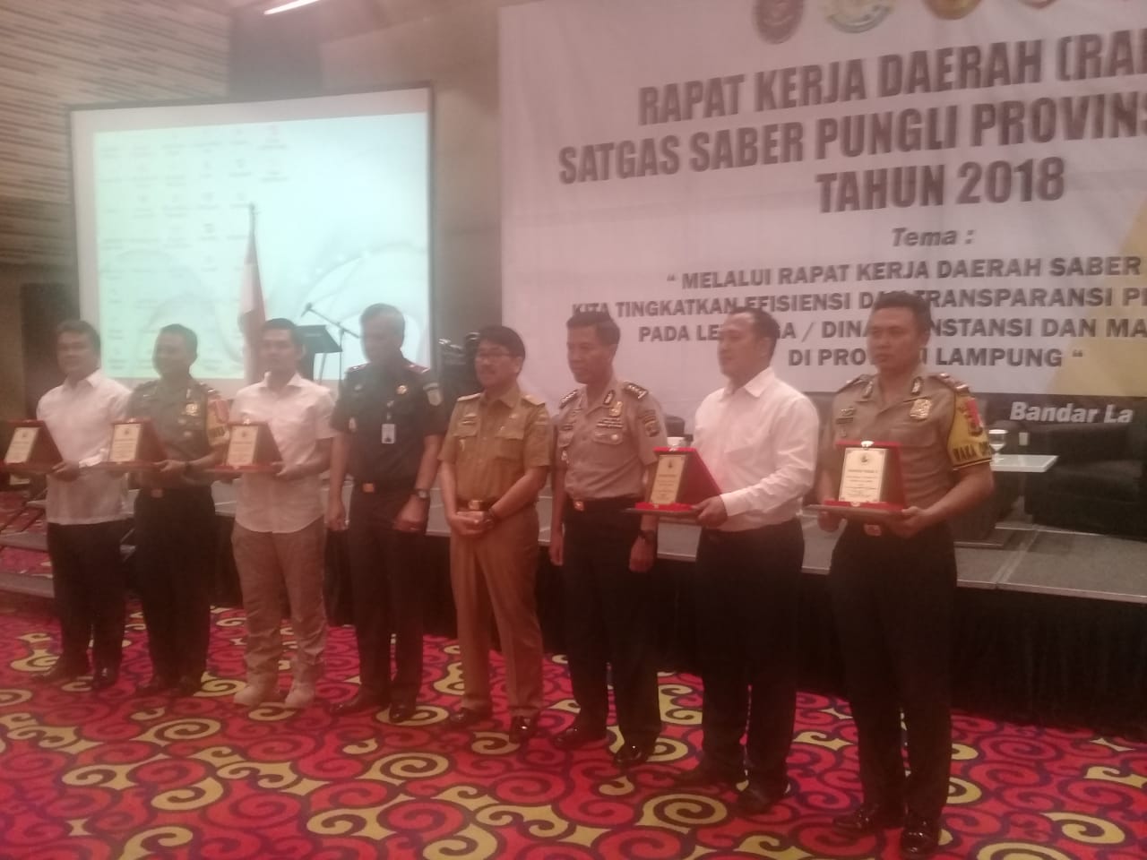 Kepolisian Resor Lampung selatan mendapatkan penghargaan terbaik II terkait satgas siber pungli Tahun 2018 untuk wilayah Lampung, selasa (18/12/18).
