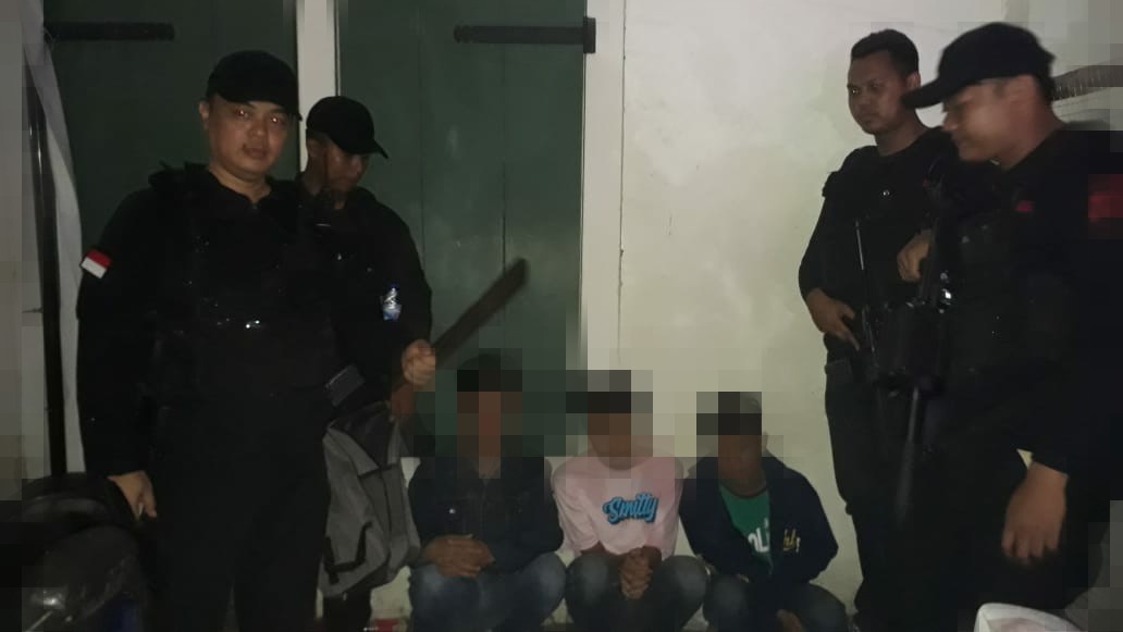 Disaat penggeledahan Tiga orang Pemuda tersebut anggota kami menemukan sebuah senjata tajam berupa golok sisir yang disembunyikan pelaku dibalik jaket yang ia kenakan.