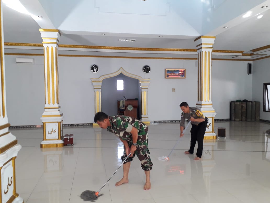 Cilegon- Personil Polsek Ciwandan bersama Babinsa Ciwandan melaksanakan kerja bakti membersihkan tempat ibadah Masjid Nurul amal yang terletak di Link Gambiran RT 12 R03 kelurahan gunung sugih kecamatan Ciwandan Kota Cilegon.