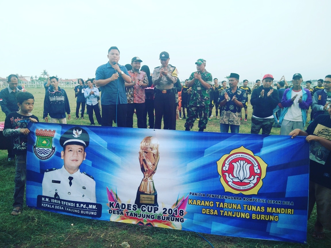 Supriyadi S. STP., Camat Teluknaga Saat Sambutan Mengatakan Bahwa “Saya Bangga Kepada Para Pemain yang telah bermain secara Sportif tanpa adanya keributan antara pemain dan bisa menahan emosi saat pertandingan sepakbola Di Final Piala Kades Cup 2018 Desa Tanjung Burung. Selanjutnya Saya Juga Memberikan Apresiasi Kepada Kepala Desa Tanjung Burung Beserta Karang Taruna Tunas Mandiri Desa Tanjung Burung yang telah mengadakan Piala Kades Cup 2018, Semoga Kita Semua Dapat Memberikan Motivasi Dan Dukungan Kepada Pemuda yang gemar dan hobbi bermain sepakbola karena olahraga sepakbola merupakan olahraga yang positif dan kita dapat melihat para generasi muda yang berbakat dan berpotensi dalam bidang olahraga sepakbola, khususnya Diwilayah Kecamatan Teluknaga. Karena Kita semua bersaudara dan marilah kita jaga bersama olahraga sepakbola yang lebih baik dan sukses seperti “Ilham Jaya Kusuma Tim Nas Indonesia 2004-2006 ,Bintang Tamu Kita yang telah hadir di Acara Final Piala Kades Cup 2018 Di Stadion Mini Kambes Desa Kampung Besar Kecamatan Teluknaga”.