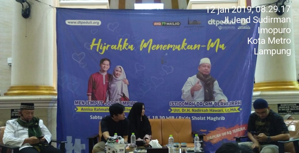 Kegiatan rutin keagamaan (tabligh akbar) oleh komunitas Ayo Cinta Masjid Kota Metro di gelar di Masjid Taqwa JL. Jend Sudirman Kota Metro , Sabtu 12 Januari 2019 Pukul 18.30 wib S/d 21.30 wib