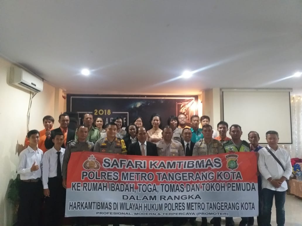 Dalam upaya menciptakan suasana kamtibmas yang aman dan kondusif serta memelihara hubungan harmonis bersama seluruh elemen masyarakat diwilayah hukumnya, Wakapolrestro Tangerang kota didampingi Kapolsek Neglasari menggelar ‘Safari Kamtibmas Polres Metro Tangerang Kota’ di sebuah tempat Ibadah tepatnya Gereja Bethel Indonesia (GBI) Iskandar Muda yang berada di Jalan Iskandar Muda, Kelurahan Mekarsari, Kecamatan Neglasari, Kota Tangerang. Minggu (13/1/19)