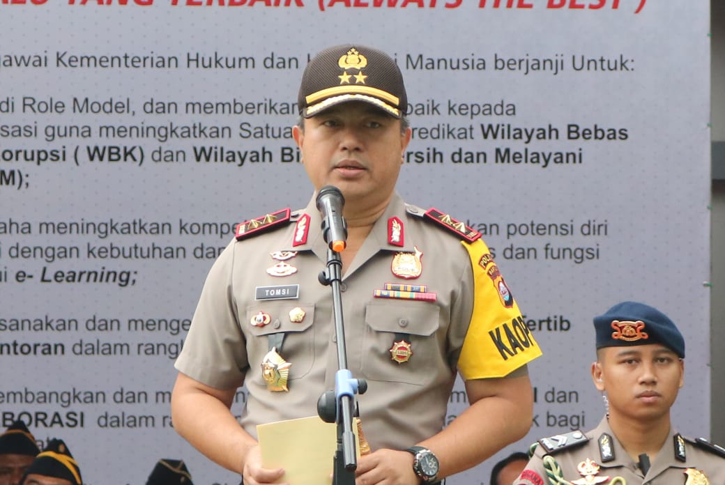 Kapolda Banten Irjen. Pol. Drs.Tomsi Tohir, M.Si, didampingi Ka BNN Provinsi Banten Brigjen Pol Tantan Sulistyana SH. MH, menghadiri kegiatan apel komitmen pelaksanaan janji kinerja tahun 2019 dengan tema “Kemenkumham Kolaborasi Berkinerja” bertempat di Lapangan Upacara Kantor Kanwil Kemenkumham Provinsi Banten, Senin, (14/01/2019)