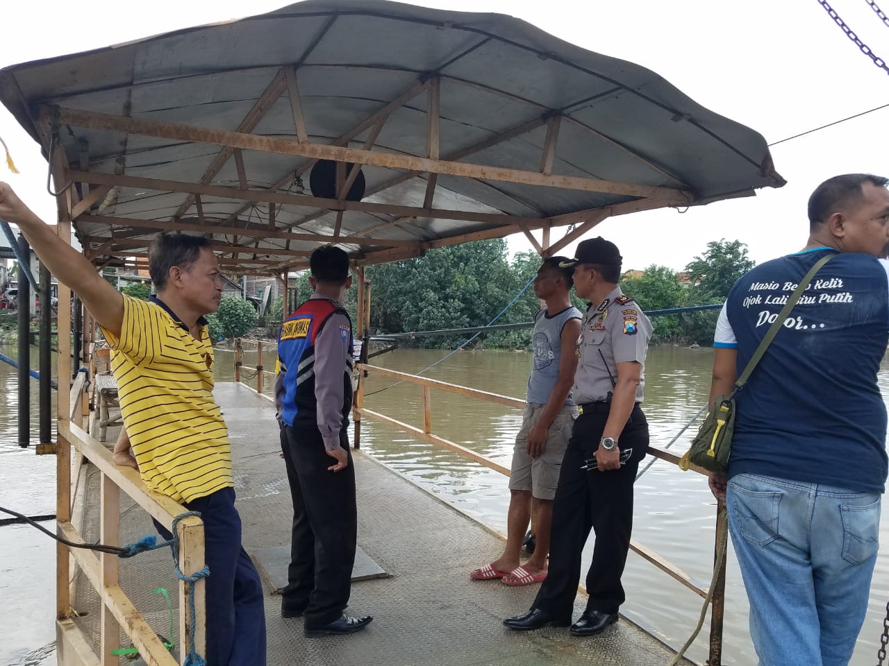 Kapolsek mendatangi  Tkp warga yang  tercebur di sungai ditambangan atau penyeberangan perahu Di lokasi Warugunung Rt 1 Rw 2, Karang Pilang Surabaya Jawa Timur.