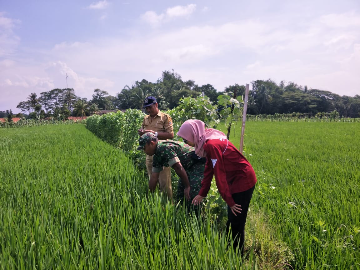Kegiatan ini dilaksanakan oleh Babinsa bersama dengan PPL dan Mahasiswi, dalam rangka mengikuti perkembangan tanaman padi dan pertumbuhannya serta melakukan pendeteksian terhadap kemungkinan hama tanaman yang menyerang tanaman tersebut.