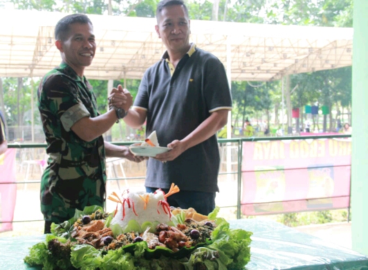 Danyonif Mekanis 203/AK serahkan potongan tumpeng ke ketua klub kicau mania Ronggolawe.