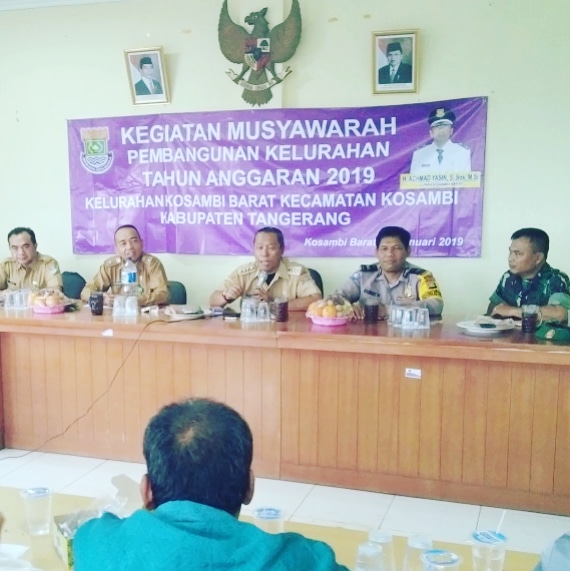Acara Kegiatan Musyawarah Pembangunan Kelurahan Tahun Anggaran 2019 Dihadiri Oleh Drs Toni Rustoni Camat Kosambi, H A Yasin S. Sos, M. Si., Lurah Kosambi Barat, Teti Mulyati SE., Kasi Pemerintah Kel Kosambi Barat, Entin Setiati,S.Pd.M.Pd., Kasi Pemberdayaan Masyarakat Kel Kosambi Barat, Indra Nazar Nugraha S. Kom., Kasie Trantib Merangkap Plt Sekertaris Kel Kosambi Barat, H Jaenudin S. Pd., Kasubag Umum Dan Kepegawaian, H Murod Kasubag Perencanaan Dan Keuangan Kec Kosambi, Bhabinkamtibmas Kel Kosambi Barat /Polsek Teluknaga, Babinsa Kel Kosambi Barat /Koramil 01 Teluknaga, Para Staf Kel Kosambi Barat, Ibu Ibu PKK, Karang Taruna, LPM, BPD, Tokoh Pemuda, Tokoh Agama, Tokoh Masyarakat, Rt /Rw, Mandor Beserta Warga Masyarakat Kel Kosambi Barat Kec Kosambi Kab Tangerang.