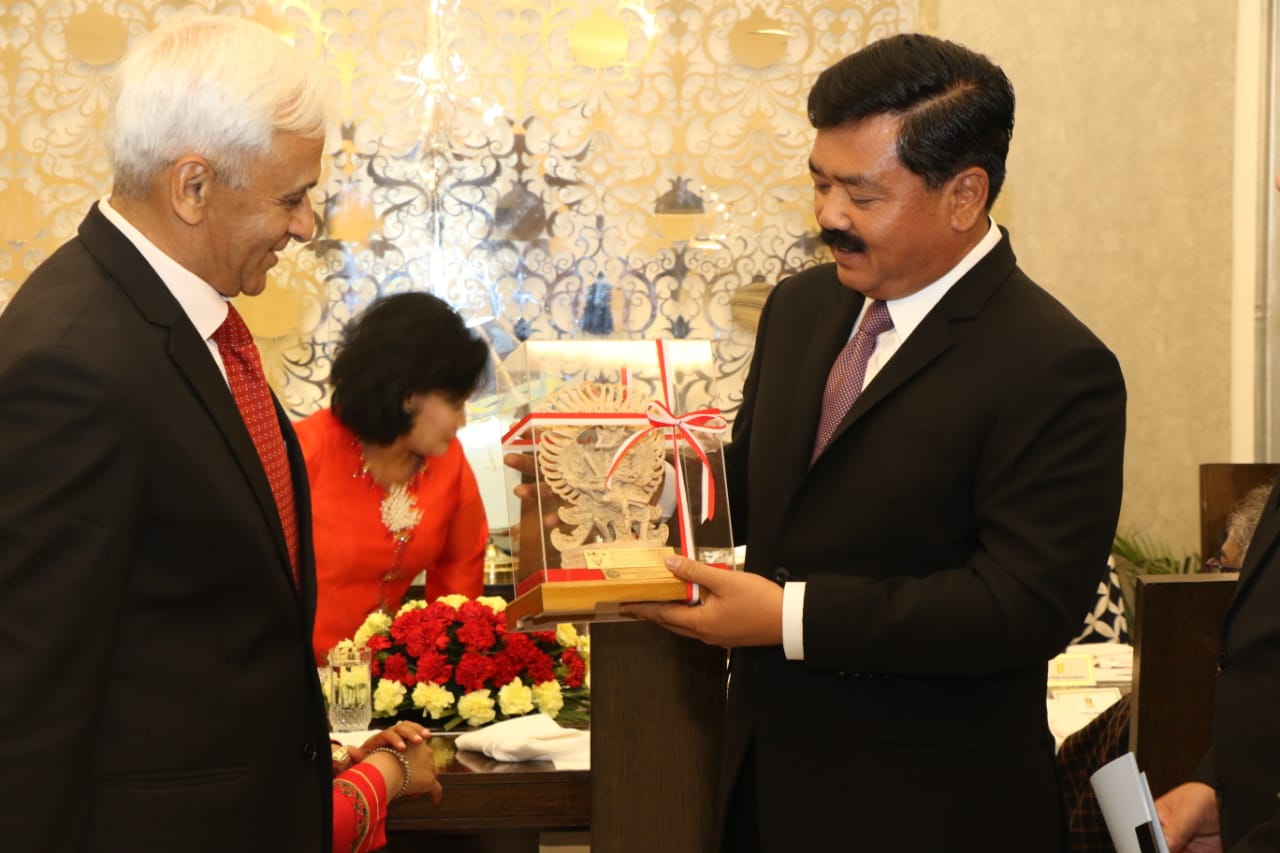 SIDIKPOST| Panglima TNI Marsekal TNI Hadi Tjahjanto, S.I.P. didampingi Ketua Umum Dharma Pertiwi Ny. Nanny Hadi Tjahjanto menghadiri undangan jamuan makan malam dari Panglima Angkatan Bersenjata India Laksamana Sunil Lanba, bertempat di Naval House, New Delhi India. Selasa Malam (04/02/2019).