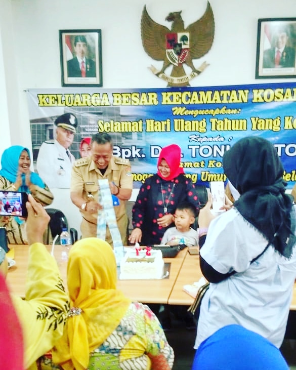 Drs Toni Rustoni Camat Kosambi Pada Saat Sambutan Mengucapkan Banyak Terima Kasih Kepada Para Staf Staf Kecamatan Kosambi Beserta Para Kader PKK Dan Juga Ibu Ibu PKK Se Kecamatan Kosambi Yang Telah Mendoakan Serta Memberikan Ucapan Selamat Ulang Tahun Ke 57 Kepada Saya Dan Saya Doakan Semoga Kita Semua Diberikan Keberkahan Dan Nikmat Sehat Serta Suksek Selalu Oleh Allah SWT “.