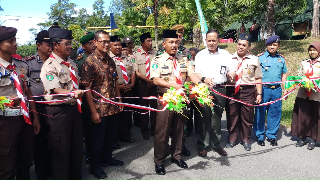 Usai upacara pembukaan dilakukan pemotongan pita tanda diresmikannya kegiatan lomba prestasi penggalang kedua Saka Wira kartika 2019.