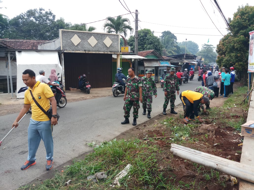 Tiga Pilar kecamatan Cilodong salah satunya Koramil 03/Sukmajaya Kodim 0508/Depok bersama warga sekitar melaksanakan pembersihan lingkungan di Jl. Abdul Gani II, Kel. Kalibaru Kec.Cilodong, Kota Depok, Jumat (15/02/19) pagi.