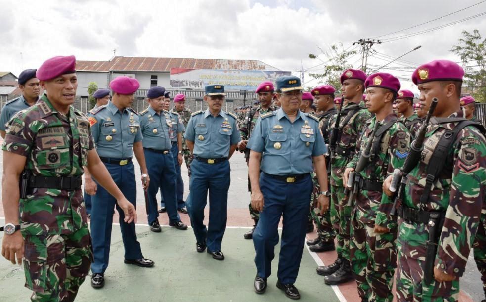 SIDIKPOST| Pontianak, 14 Maret 2019,– Wakil Komandan Lantamal XII Pontianak Kolonel Marinir Bambang Hadi Suseno, S.E., mewakili Komandan Lantamal XII Pontianak Laksamana Pertama TNI Greg. Agung W.D., M.Tr (Han) melaksanakan Apel Kesiapan dan Pengecekan Gelar Pasukan Pengamanan Pemilu Pemilihan Legislatif dan Pemilihan Presiden Tahun 2019 di Lapangan Apel Mako Lantamal XII Pontianak, Jalan Kom Yos Sudarso No. 1 Pontianak, Kamis (14/3).