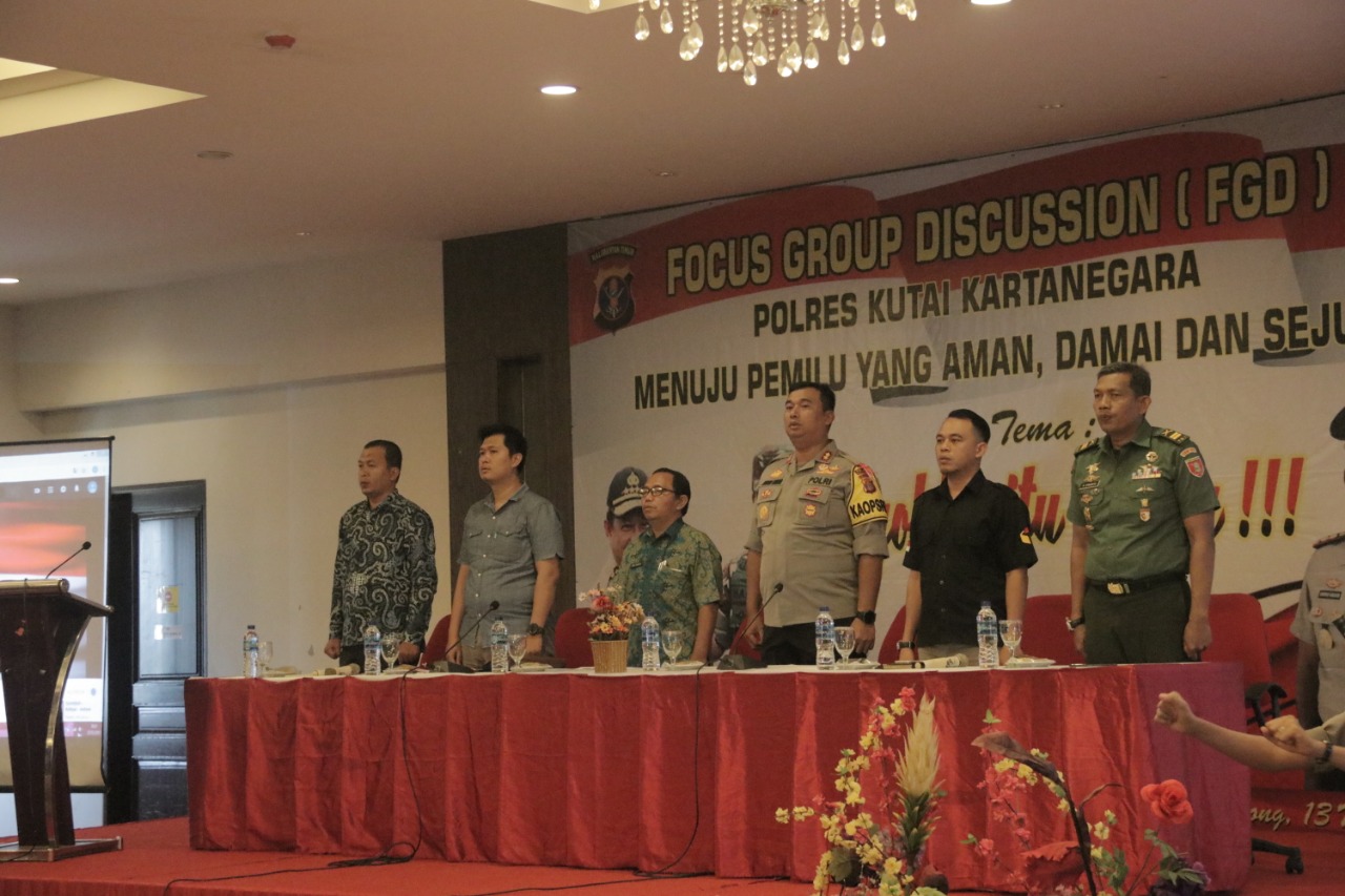 KUKAR – Jelang pemilihan umum (pemilu) serentak yang jatuh pada tanggal 17 April 2019 mendatang. Seluruh jajaran Muspida di Kabupaten Kutai Kartanegara (Kukar), Kamis (28/3/2019) pagi sekitar pukul 10.00 Wita mengikuti acara Focus Group Discussion (FGD) yang diselenggarakan Polres Kukar di Ballroom Hotel Grand Fatma, Tenggarong.