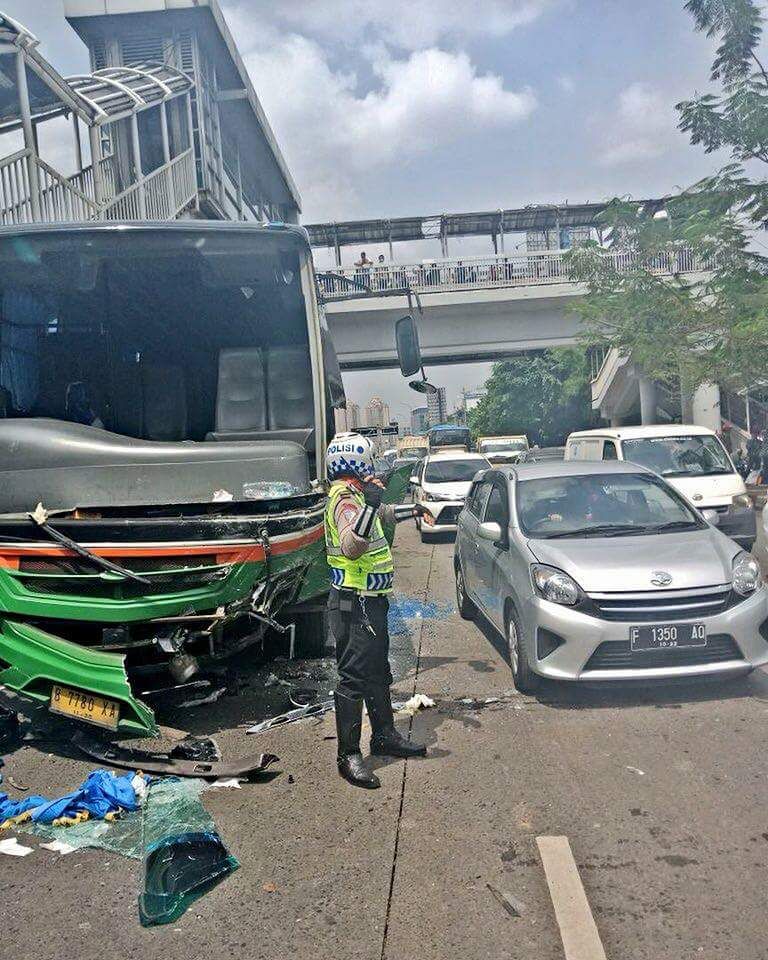 Kasat Lantas Polres Jakarta Barat AKBP Sudarmanto mengatakan, peristiwa itu terjadi pada Sabtu (28/4/2018) ini, saat itu bus tersebut melaju dari arah lampu merah Slipi ke arah Tomang. Rem bus tersebut blong hingga akhirnya menyeruduk satu mobil bernopol B 1004 KJB dan satu sepeda motor bernopol B 6692 WRD.