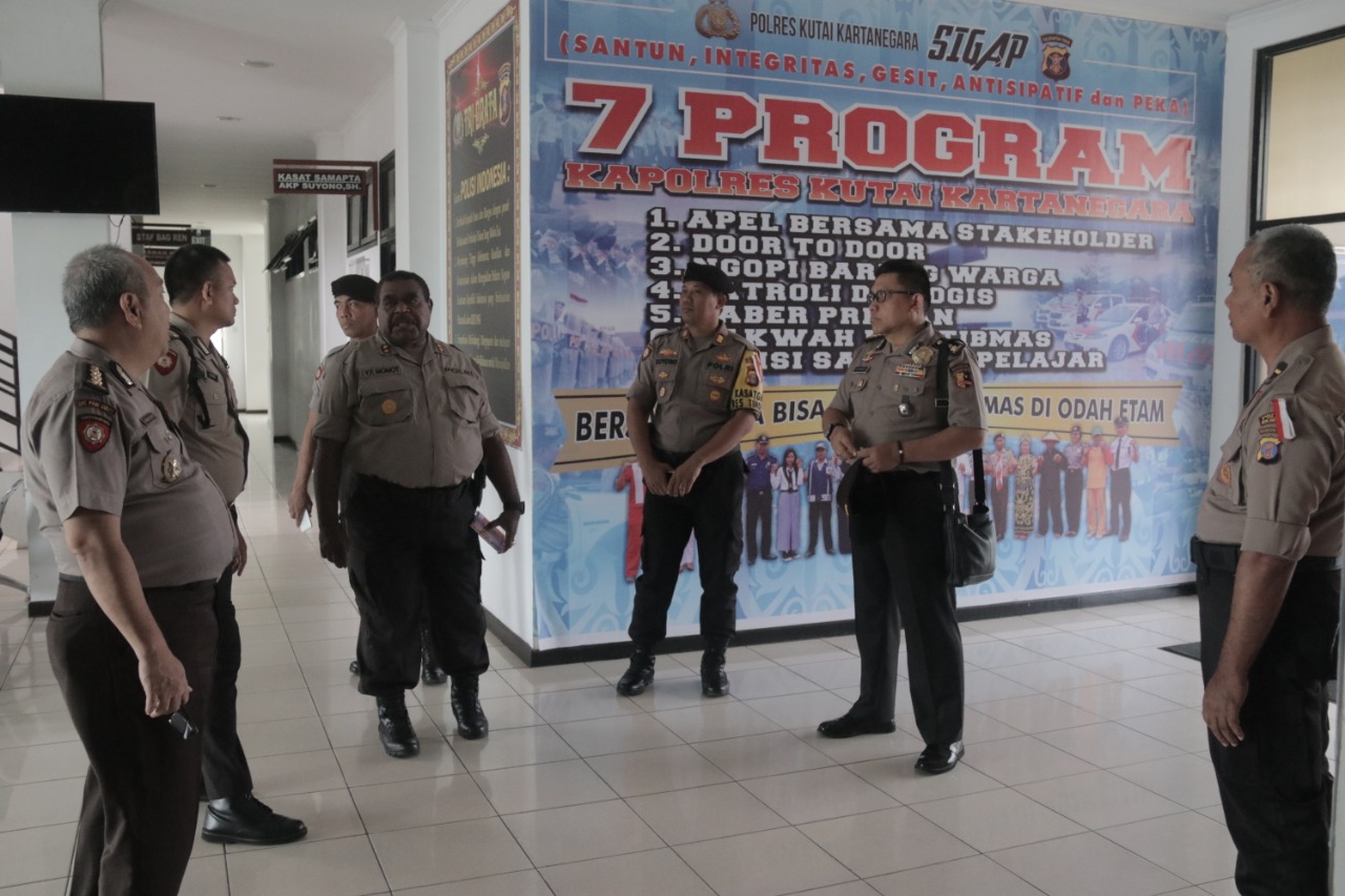 Kedatangan Tim di Polres Kukar dalam rangka untuk mengecek Pelaksanaan Operasi Mantap Brata, dari berbagai tahap baik yang menyangkut Administrasi Kelengkapan Operasi, Pengamanan baik Kampanye maupun Pengamanan Logistik di Kpu dan Bawaslu, Ploting Rencana Pengamanan personel di TPS.