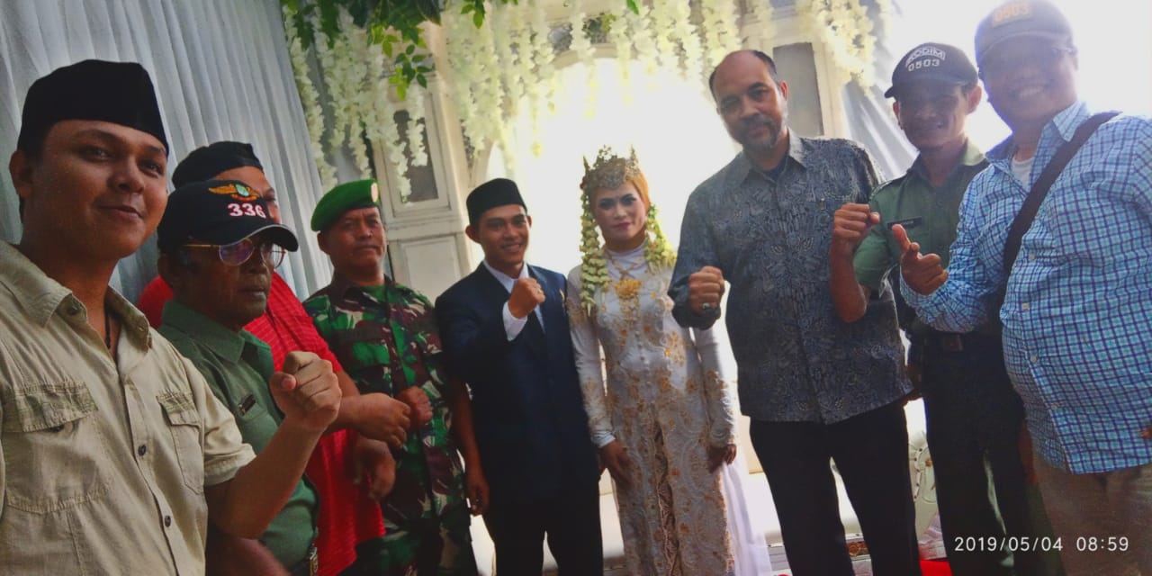 SIDIKPOST| JAKARTA BARAT – Dalam rangka menjalin persaudaraan dan kekeluargaan, Babinsa Koramil 03/GP Serda Rubiyanta bersama Ketua Umum & anggota Mitra Jaya Koramil 03/GP pimpinan A. Edrin Sofyan Lubis, SE, B.Sc menghadiri acara akad nikah dan resepsi pernikahan salah satu mitra binaannya yaitu Yusep Abdul Halim, anggota Mitra Jaya Jajaran 336 Kelurahan Kota Bambu Utara yang bertempat di Jalan Mercedes Benz RT.002/RW.02 Kelurahan Cicadas, Kecamatan Gunung Putri, Jawa Barat, Sabtu (4/5/2019).