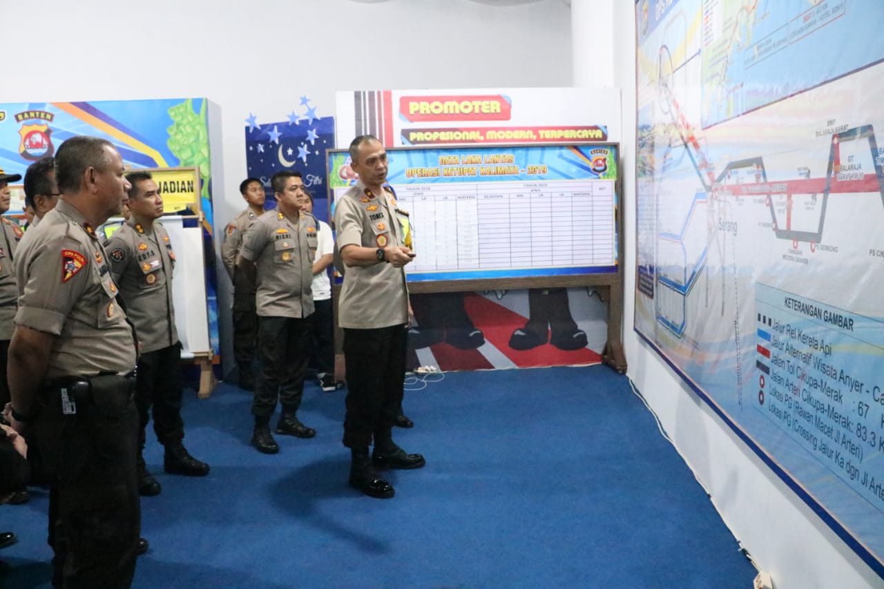 SIDIKPOST|Cilegon, Merak – memastikan arus mudik dan pelayanan penyeberangan angkutan umum laut Pelabuhan Merak – Pelabuhan Bakauheni aman dan nyaman, Wakapolda Banten Brigjen Tomex Korniawan di dampingi Kabid Humas AKBP Edy Sumardi dan Dirlantas Kombes Wibowo beserta kapolres Cilegon turun langsung tinjau lokasi terminal eksekutif merak. Rabu 29/05/2019.