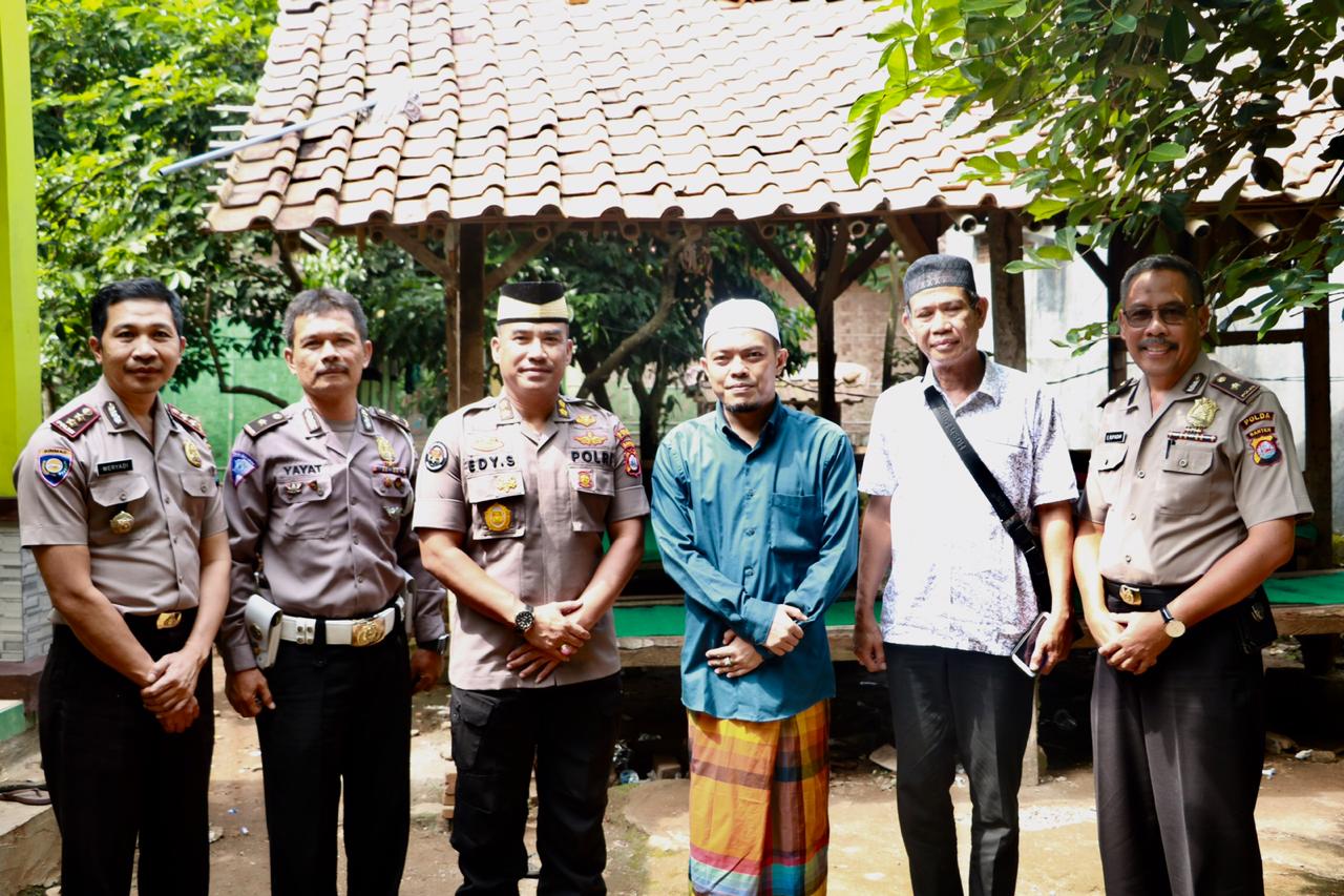 Dalam Rangka Mengimplementasi Kebijakan Kapolda Banten, Tentang Perkuat sinergita Ulama dan Umaroh di wilayah provinsi banten, senantiasa terus mempererat tali silahturahmi kepada tokoh agama, dan tokoh tokoh masyarakat. Kabid Humas Polda Banten didampingi AKBP Meryadi, AKBP Supangkat, Kasubdit penmas, Kp. E. Rupiadam, KP Yayat menyambangi kediaman KH. Jamaludin Pimpinan Pondok Pesantren Nailul Amanah di Kampung Tengkelek Ling. Kahuripan RT 01/01, Kelurahan Karundang, Kecamatan Cipocok Serang, Sabtu (15/06/2019).