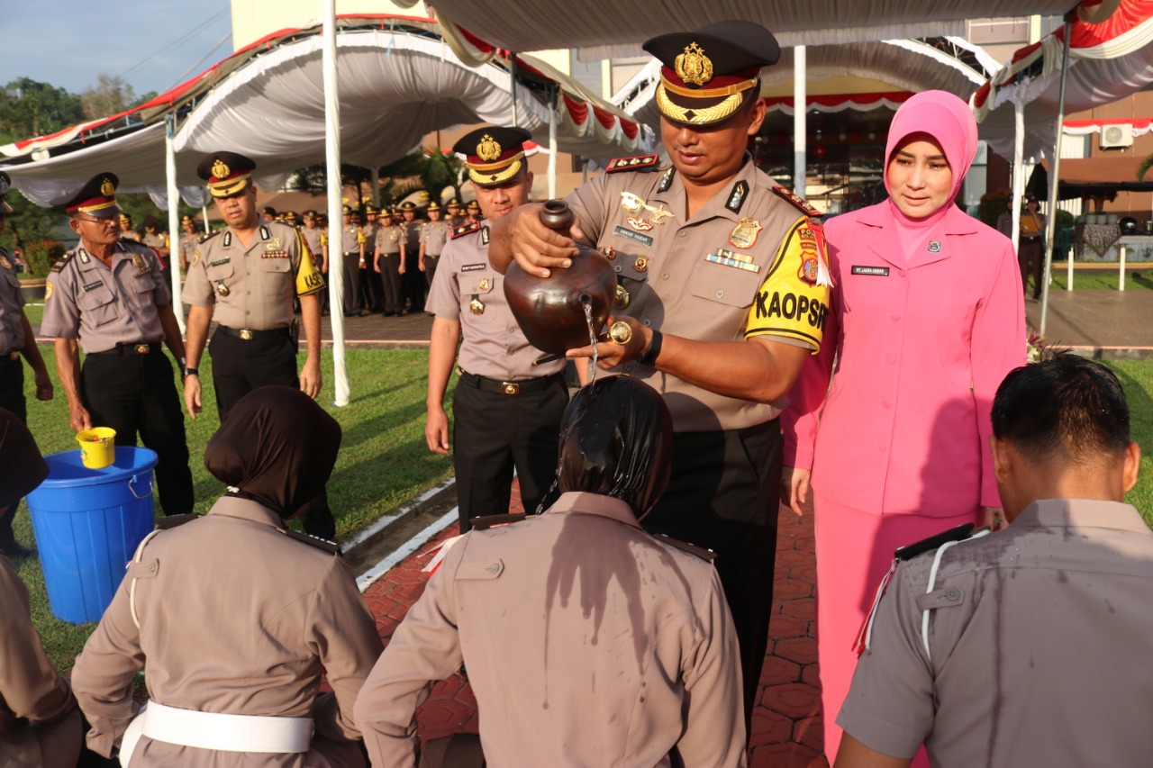 Upacara yang dilaksanakan dilapangan apel Polres Kukar tersebut berjalan khidmad dan diakhiri dengan tradisi penyiraman air buga terhadap personel yang naik pangkat. ( Red).