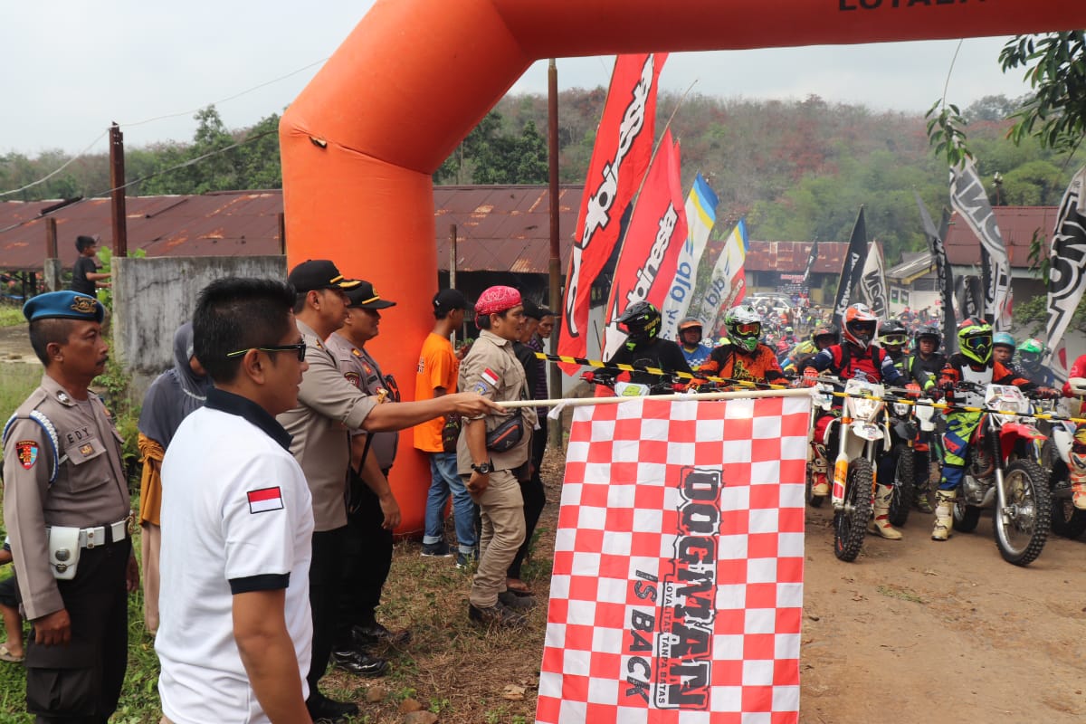 Kapolres Ciamis AKBP Bismo Teguh Prakoso, SH, S.iK, MH, membuka kegiatan acara Dog Man Is Back Trail Adventure di PTPN VIII Batulawang Desa Tanjung Jaya, Kecamatan Cisaga, Kabupaten Ciamis, Minggu (07/7/2019).