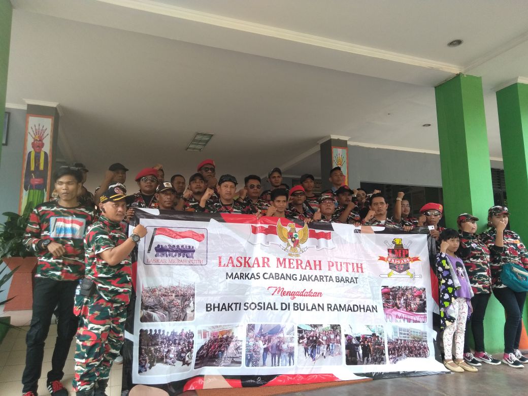 Laskar Merah Putih (LMP) Markas cabang Jakarta Barat melakukan bakti sosial di Panti sosial Kedoya, gelaran acara Bakti sosial Ini Bentuk kepedulian Laskar Merah Putih Jakarta Barat terhadap panti sosial.( 14/05/2018).