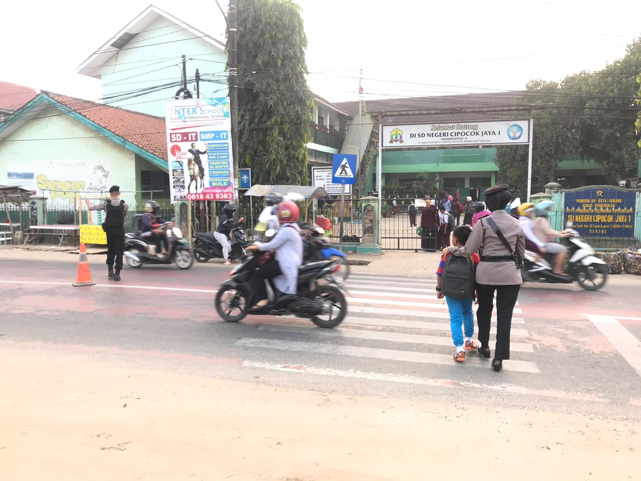 SIDIKPOST| SERANG – BANTEN. Memberikan kenyamanan dalam beraktifitas di pagi hari , Direktorat Samapta Polda Banten melakukan Pengaturan Lalu Lintas Pagi di lokasi Perumahan citra gading, Perumahan Serang Hijau, SMAN 6 Kota Serang, SDN Cipocok Jaya, Selasa, (30/07/2019).