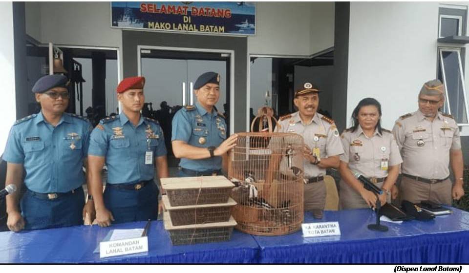 Dalam confrence persnya, Danlanal Batam mengatakan bahwa Tim F1QR Lanal Batam berhasil menggagalkan penyeludupan Burung dari Malaysia ke Batam dengan menggunakan speedboat yang dikandaskan ke daratan Pulau Kasam Telaga Punggur pada posisi 1° 01’ 45 U’’ – 104° 08’ 04’’ T, (pelaku penyelundup melarikan diri dengan cara mengandaskan speed boadnya ke bakau-bakau). Dari penangkapan terhadap Speedboat mesin 40 PK X 1 buah merk Yamaha tersebut diperoleh barang bukti berupa burung sebanyak sekitar 450 ekor.