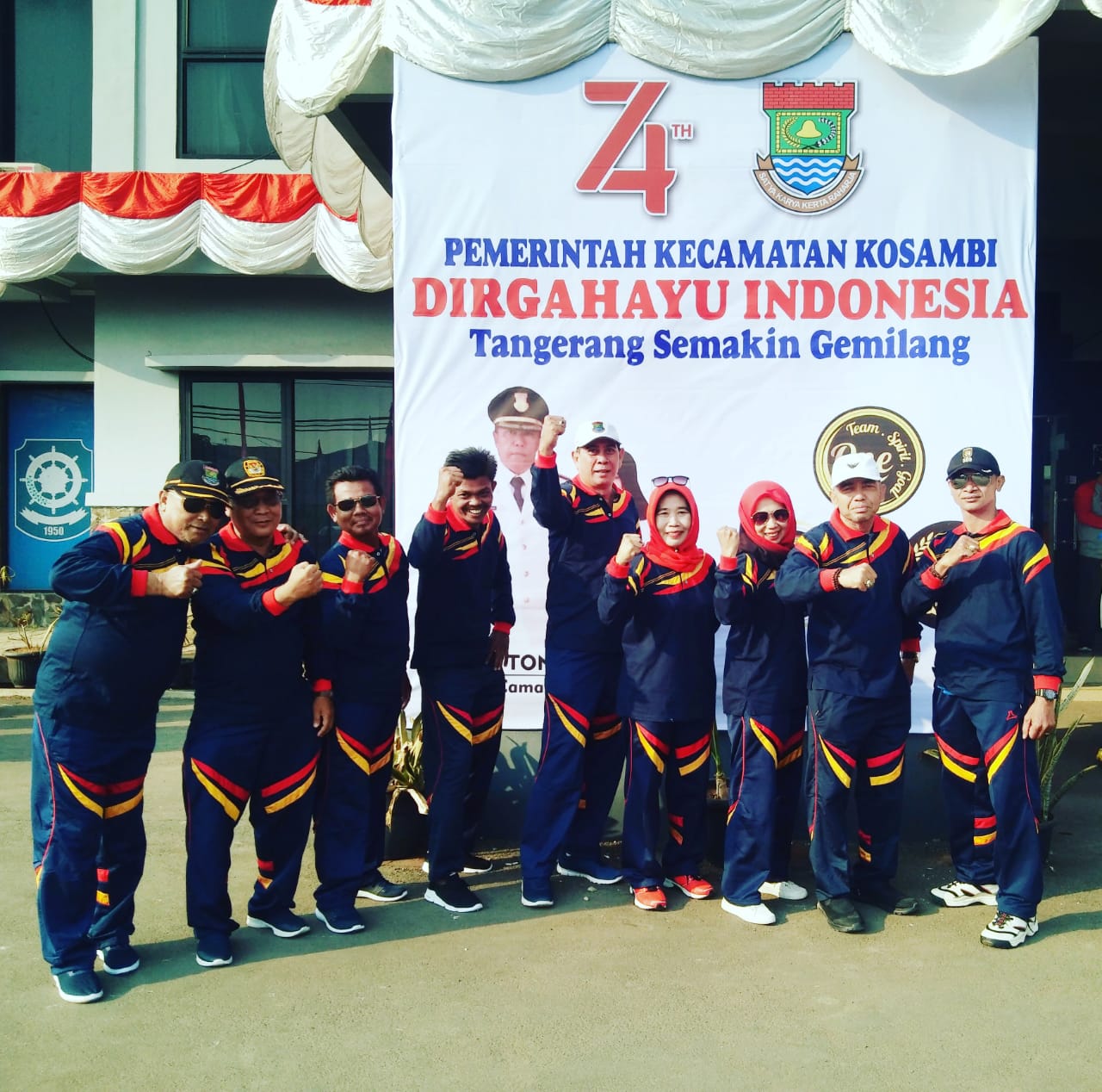 SIDIKPOST| Dalam Rangka Memeriahkan HUT Kemerdekaan Republik Indonesia HUT RI Ke 74 Tahun 2019 ,Pada Selasa 13 Agustus 2019 Jam 07:30 Wib ,H Achmad Yasin S.Sos.Msi.,Lurah Kosambi Barat Beserta Para Kasi/Staf Dan Juga Para Ibu Ibu Kader PKK Kelurahan Kosambi Barat ,Datang Mengikuti Acara Gerak Jalan Dan Senam Sehat Tingkat Kecamatan Kosambi Tahun 2019 “Dirgahayu Indonesia”, Yang Diselenggarakan Di Halaman Kecamatan Kosambi Kab. Tangerang.(13/08/19)