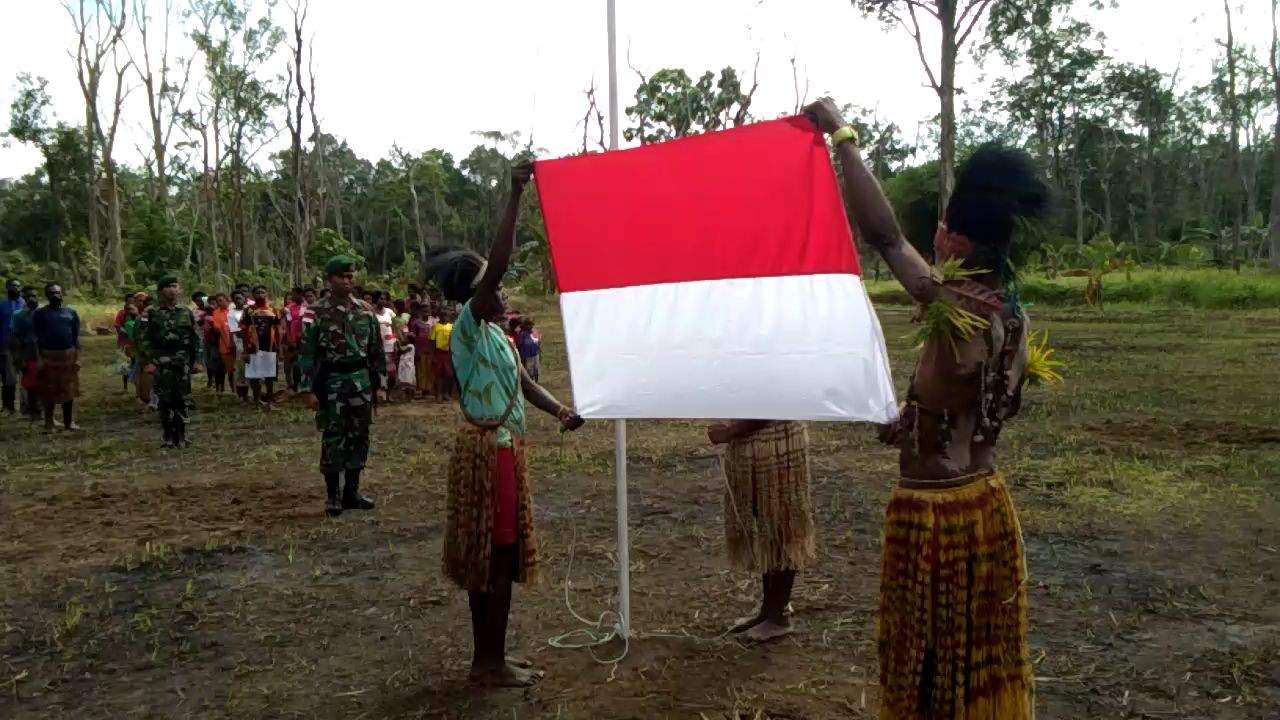 Satgas Pamtas Yonif 411 Gelar Upacara HUT Ke-74 RI dengan Masyarakat Kampung Yakyu Papua