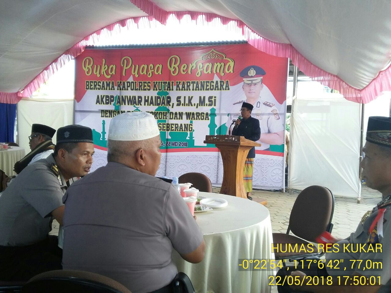 Kapolres Kutai Kartanegara ( Kukar ) AKBP ANWAR HAIDAR, S.IK, M.SI, yang diwakili Kabag Sumda Polres Kutai Kartanegara KOMPOL KEMIS, S. Sos, mengatakan bahwa Acara Buka Puasa Bersama ini adalah merupakan Program Pimpinan Pusat dalam Memakmurkan Masjid dan untuk menjalin Silaturahmi dengan para Tokoh & Warga masyarakat khususnya Warga Tenggarong Seberang.