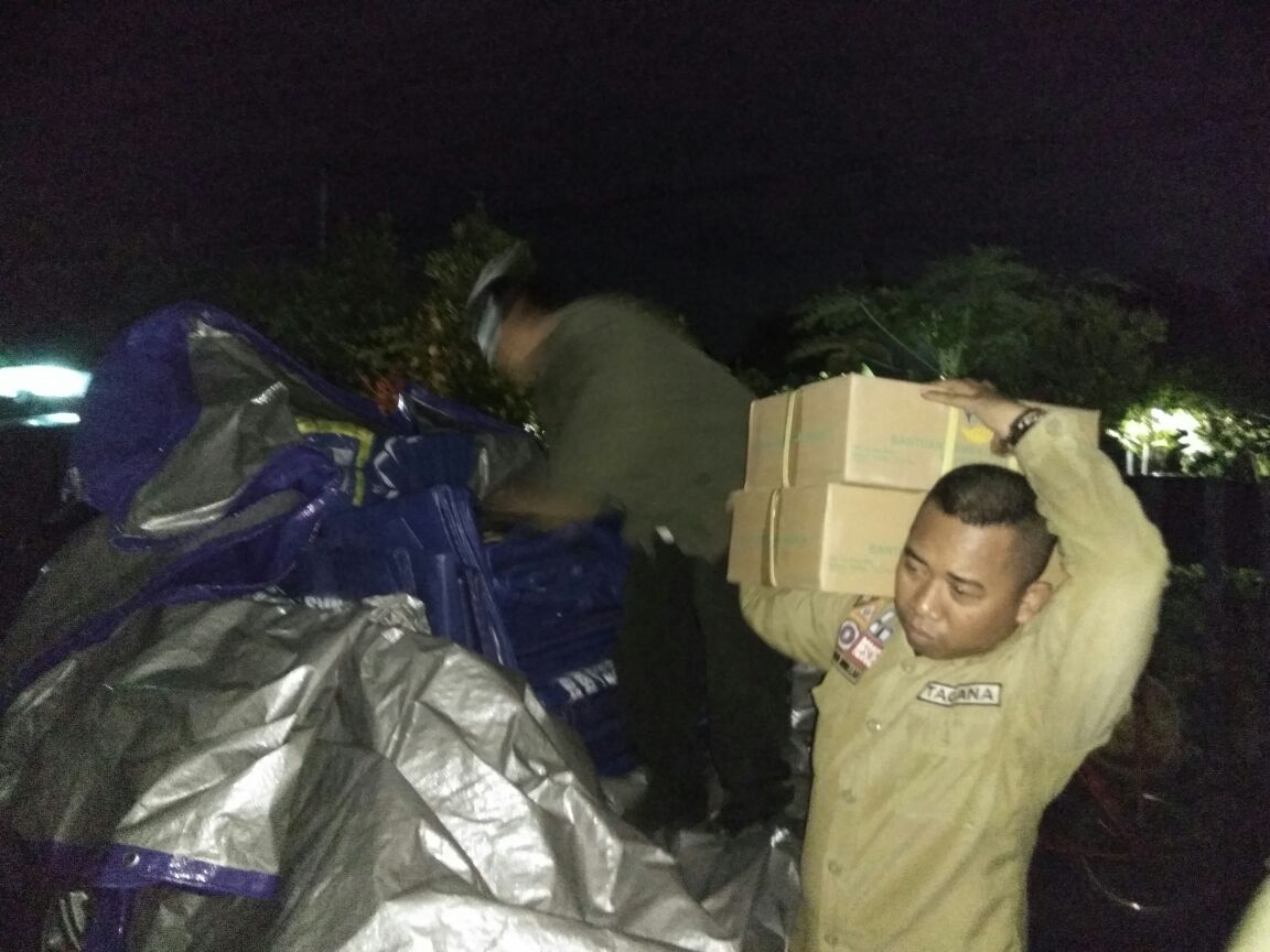 Petugas Sosial Kesiapsiagaan Bencana (PSKB) yang terdiri dari Taruna Siaga Bencana (Tagana) Suku Dinas Sosial Kota Administrasi Jakarta Pusat mendistribusikan bantuan tersebut.