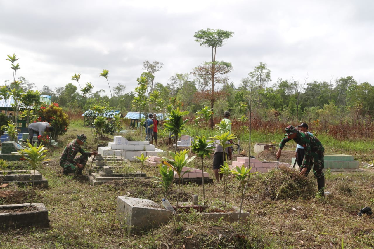 Kegiatan yang dilakukan oleh 10 anggota Pos Kout Satgas Pamtas RI-PNG Yonif 411 Kostrad dipimpin Serma Catur Budi dan 2 (dua) anggota Polsek Sota dipimpin Kapolsek Iptu Makruf Suroto bersama-sama dengan warga Kampung Sota Jalur B, membersihkan Tempat Pemakaman Umum (TPU) Kampung Sota yang sudah banyak ditumbuhi oleh rumput liar dan alang-alang.
