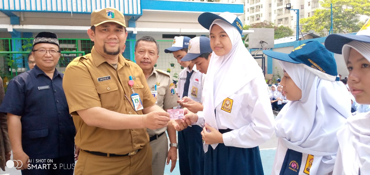 JAKARTA,SIDIKPOST-Sebanyak 104 Kartu Identitas Anak (KIA) diserahkan oleh Suku Dinas Kependudukan dan Catatan Sipil (Disdukcapil) Jakarta Barat, di SMPN 69 Tanjung Duren Selatan , Pada Senin (21/10/2019) pagi.