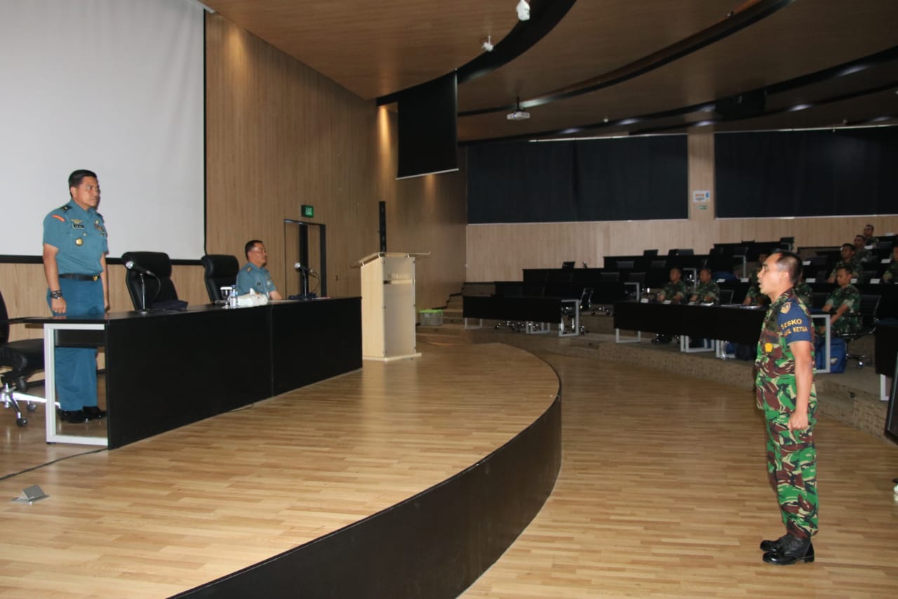 SIDIKPOST| Jakarta, 25 Oktober 2019 ———- Kepala Staf Komando Lintas Laut Militer (Kaskolinlamil) Laksma TNI Dwika Tjahja Setiawan, S.H. mewakili Panglima Kolinlamil Laksma TNI Ahmadi Heri Purwono, S.E., M.M. Memberikan pembekalan kuliah umum kepada Perwira Pendidikan Reguler Sekolah Staf Komando TNI Angkatan Udara (Seskoau) A-56 tahun 2019 di Kampus Seskoau Lembang Bandung, Jumat (25/10). Laksma TNI Dwika Tjahja Setiawan, S.H. yang seorang penerbang TNI AL juga almamater Seskoau memberikan materi tentang Komando Lintas Laut Militer (Kolinlamil) mulai sejarah Kolinlamil, tugas pokok, organisasi dan kekuatan unsur serta daerah wilayah operasinya kepada 113 Pasis Seskoau.