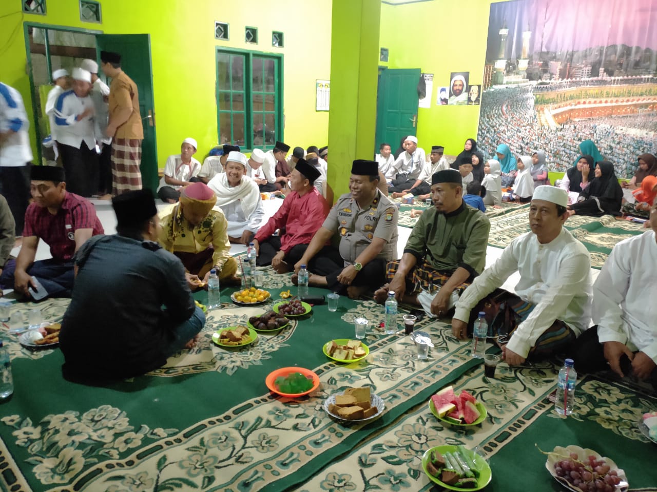 NEGLASARI – Kapolsek Neglasari Polres Metro Tangerang Kota, Kompol R. Manurung, SH didampingi personil Bhabinkamtibmas Aiptu Slamet menghadiri kegiatan peringatan Maulid Nabi Muhammad SAW di Majelis Ta’lim Adiyatul Hidayah yang berada di Kampung Sindangsana, RT 03, RW 02, Kelurahan Neglasari, Kecamatan Neglasari, Kota Tangerang, Jum’at (22/11/19) malam.
