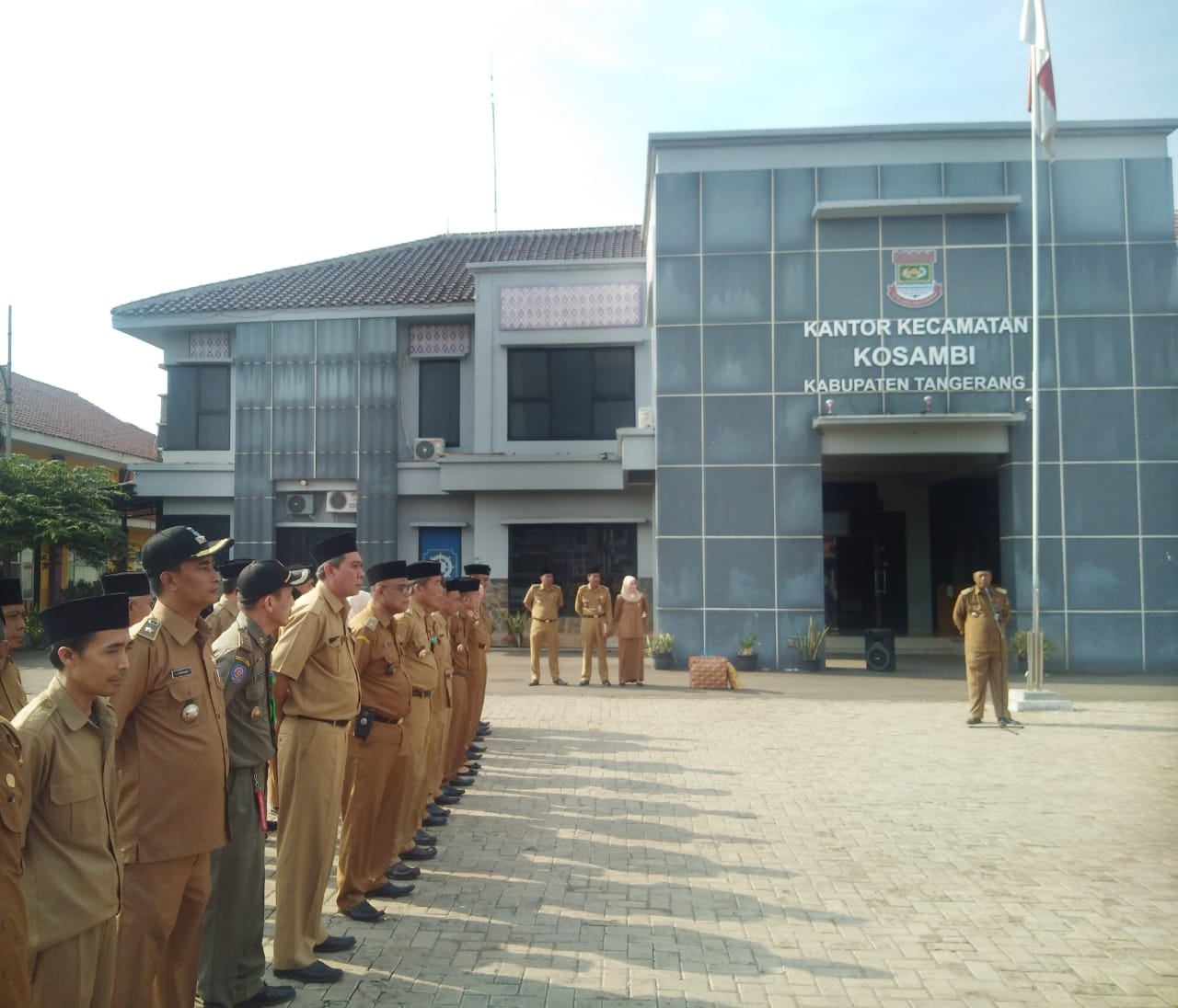 Dalam Rangka Upacara Pada Senin 02 Desember 2019 Yang Dilaksanakan Di Aula Kantor Kecamatan Kosambi Turut Dihadiri Oleh Drs H.Toni Rustoni Camat Kosambi, Drs Syarip Hidayat MM.,Sekcam Kosambi, H Dedi Wahyudi Pjs Kepala Desa Salembaran Jati, Tiham Agustian Pjs Kepala Desa Belimbing, Bajuri Pjs Kepala Desa Rawa Burung, H Saduni.S.Sos.,Pjs Kepala Desa Cengklong, Sunartim S.Pd.,Pjs Kepala Desa Kosambi Timur, H Samsudin ST.,Pjs Kepala Desa Jatimulya, H.Yasin Lurah Kosambi Barat, H Arif S Pjs Kepala Desa Rawa Rengas. Dan Turut Hadir Para Kasi/Staf Kecamatan Kosambi Beserta Anggota Satpol PP Kecamatan Kosambi Kabupaten Tangerang.