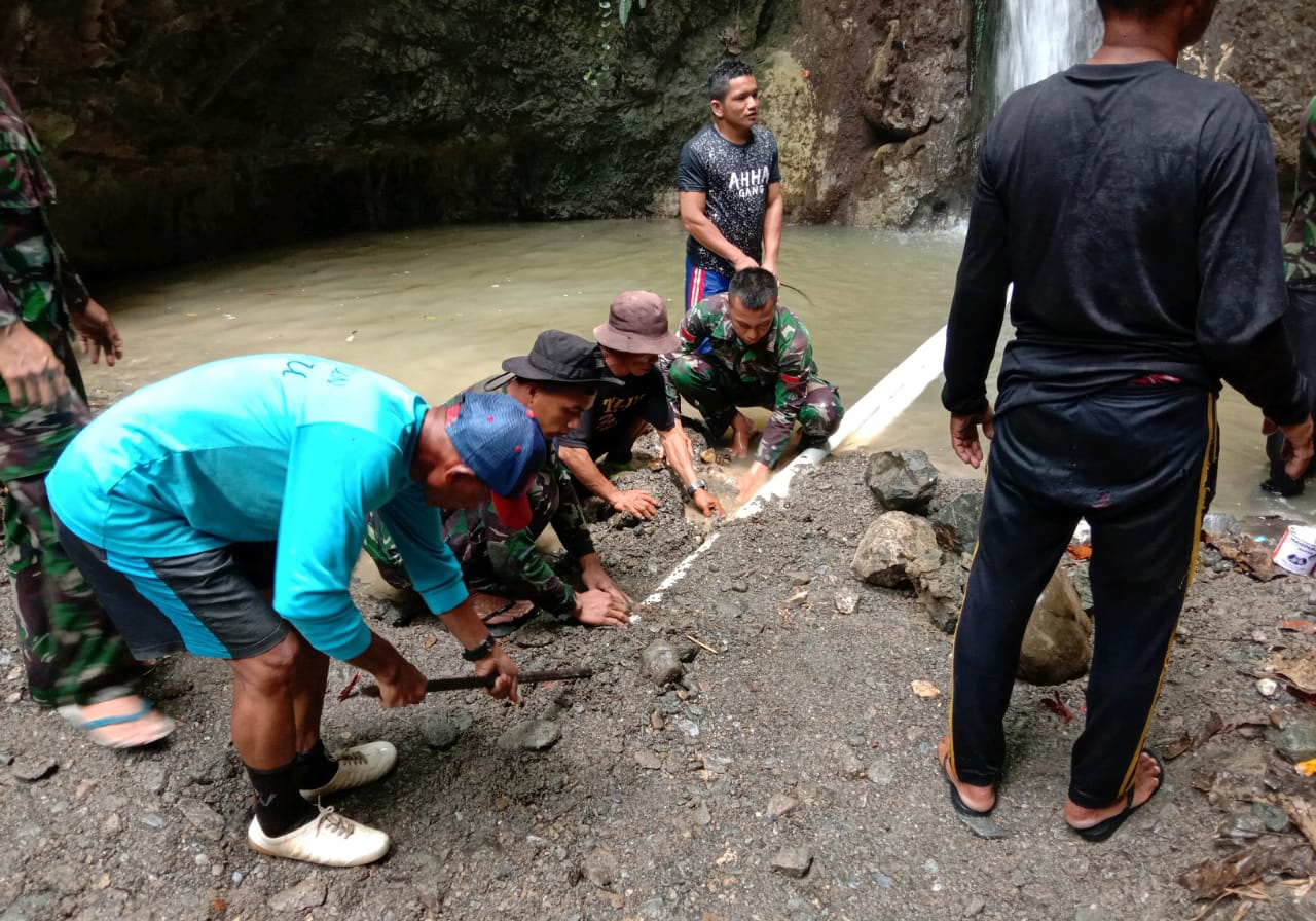 “Kami mengucapkan terimakasih atas bantuan Bapak-bapak TNI, mudah-mudahan denganselesainya saluran pipa air ini,warga disini tidak lagi kekurangan air bersih,” kata salah seorang warga Dusun Aira.