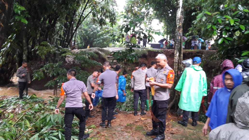 Kombes Pol M. Alfian Hidayat S.I.K Komandan Resimen II Korbrimob Polri menjelaskan bahwa pihaknya telah memberikan bantuan pembersihan longsoran dan pohon bambu yang menutupi sungai dan Rumah Warga.