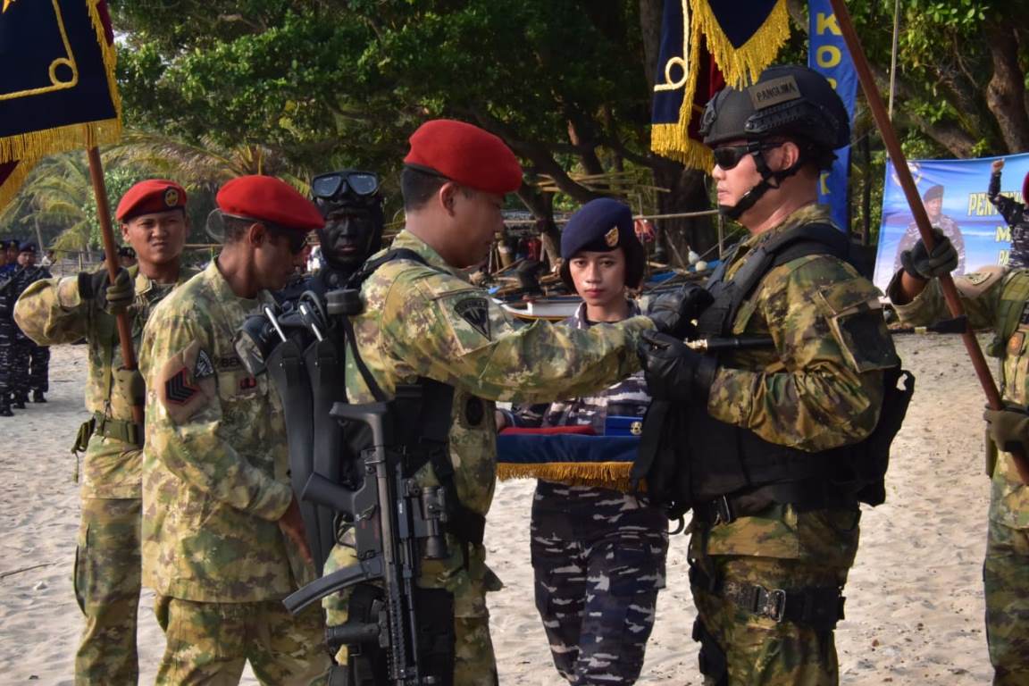 Penyematan Brevet Manusia Katak dari Pasukan Khusus TNI Angkatan Laut Satuan Komando Pasukan Katak Koarmada I kepada Pangkoarmada I disematkan oleh Komandan Satkopaska Koarmada I Kolonel Laut (P) Baroyo Eko Basuki, M.M.