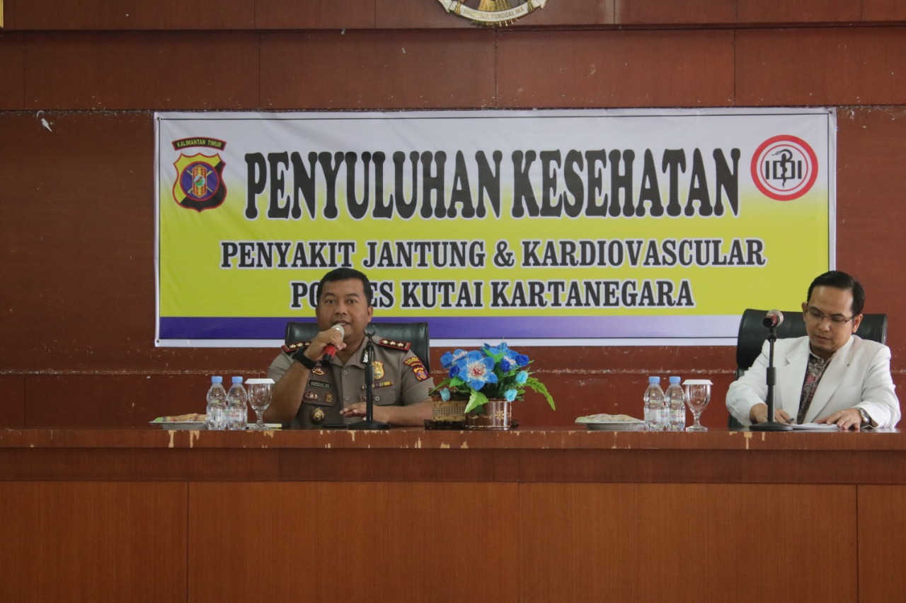 Kegiatan yang bertemakan ” Penyuluhan kesehatan penyakit Jantung dan Kardivaskular “ dari Ikatan Dokter Indonesia (IDI) Kab. Kukar ini dipimpin dan dibuka langsung oleh Kapolres Kukar AKBP Andrias Susanto Nugroho dan dr. Muhammad Satrio Wirawan selaku narasumber.