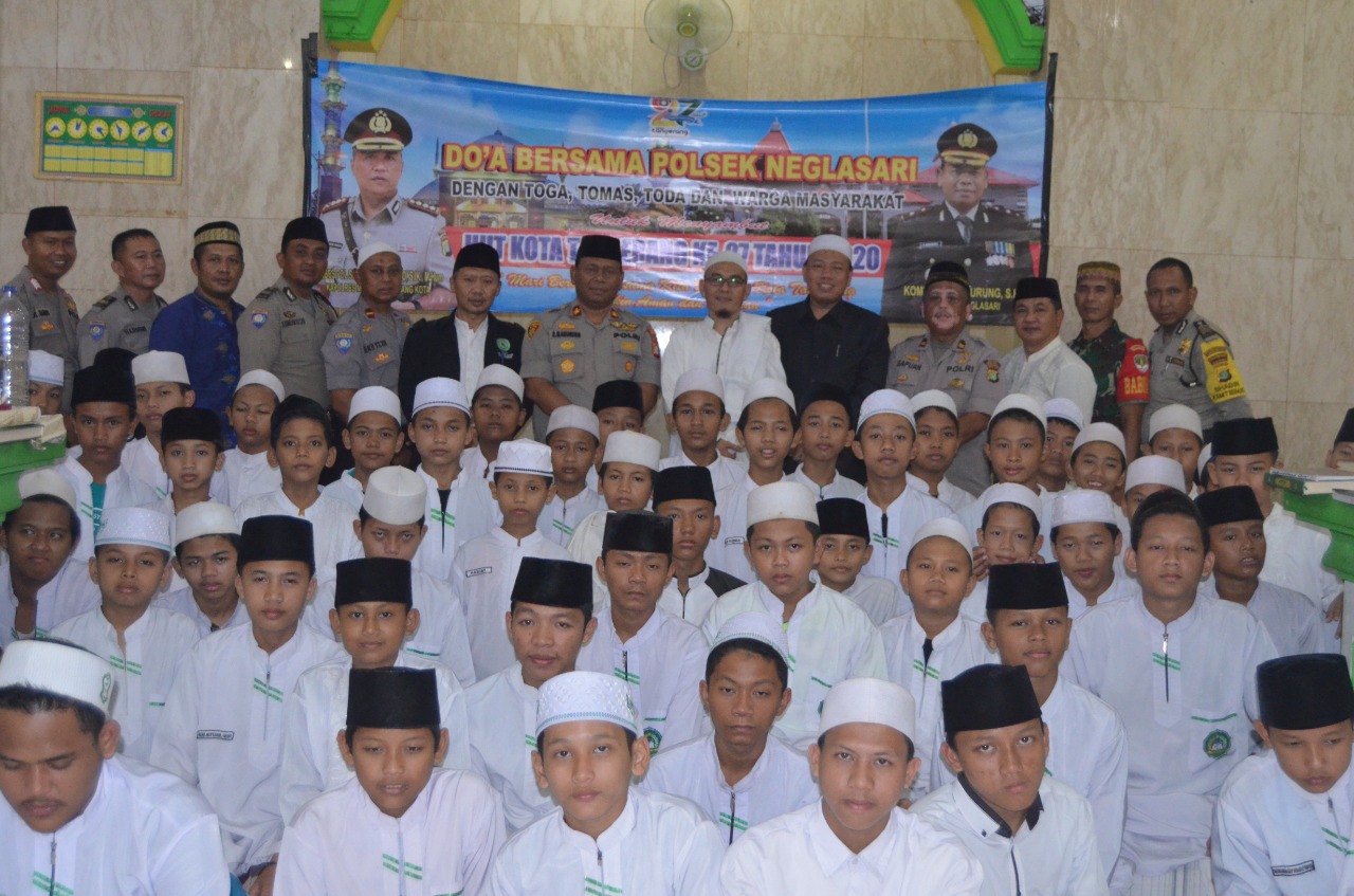 Kapolsek Neglasari, Kompol R. Manurung, SH yang memimpin langsung kegiatan mengatakan, pelaksanakan kegaitan dalam rangka do’a bersama menyambut hari ulang tahun (Hut) Kota Tangerang yang ke 27. Ia berpesan kepada santri, untuk bersemangat dalam meraih cita-citA serta menjauhi trek-trekan, tawuran dan narkoba.
