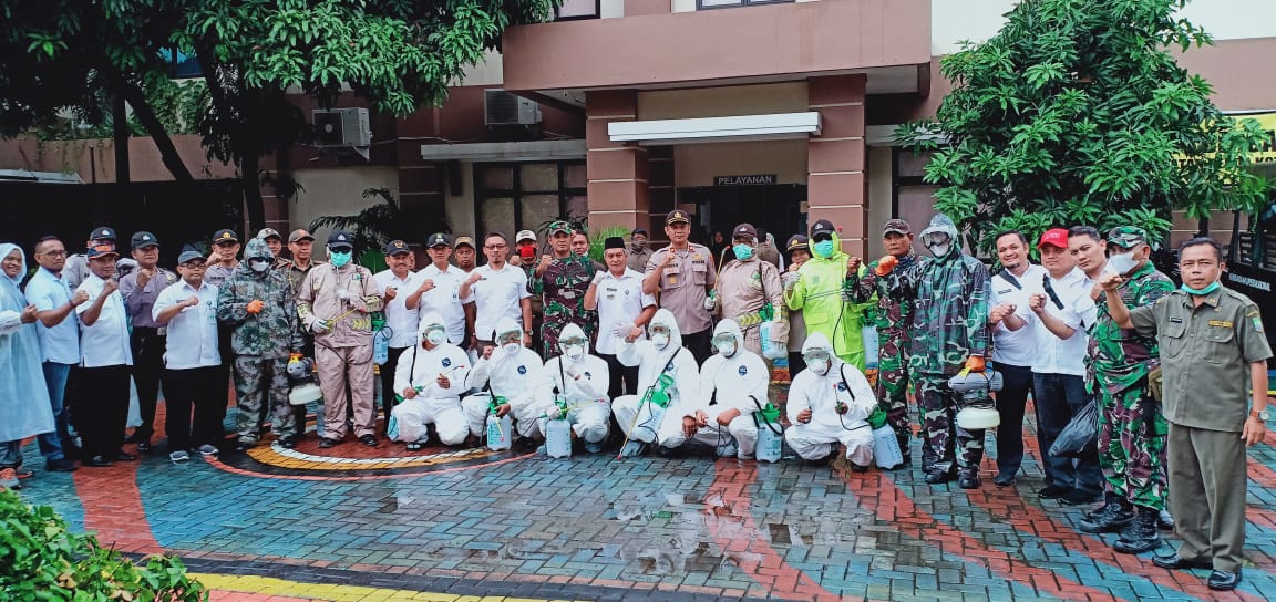 Kegiatan Penyemprotan Disinfektan Dalam Rangka Minimalisir Penyebaran Virus Corona (Covid-19) Kegiatan Tersebut Turut Dihadiri Oleh H. Ayi Nuryadin.S. KOM. MM., Camat Benda, Kompol Doddy Ginanjar. SH., Kapolsek Benda, Mayor Arm Bambang Heryanto.S. Sos., Danramil 02 Batuceper, AKP Gunawan.SH., Wakapolsek Benda Beserta Anggota Personil Polsek Benda Dan Anggota Personil Koramil 02 Batuceper Beserta Para Staf Kecamatan Benda Dan Para Staf Kelurahan Se Kecamatan Benda Tangerang Kota.