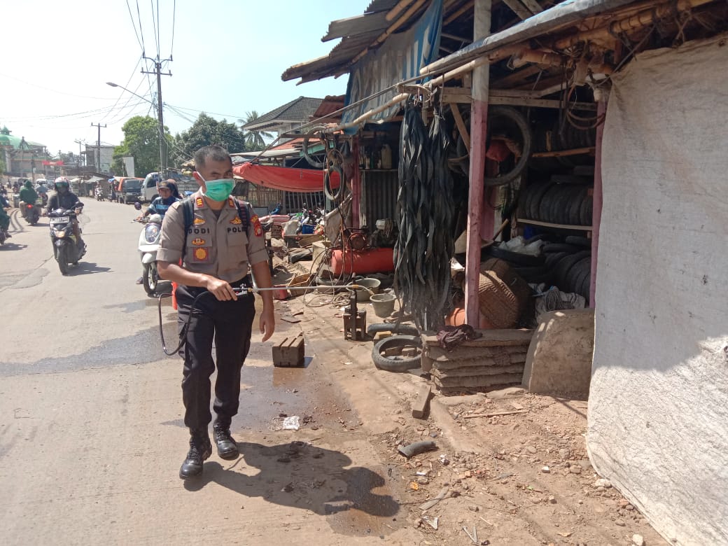 AKP Dodi Abdul Rohim S.Sos.M.Krim., Kapolsek Teluknaga Mengatakan Bahwa Penyemprotan Disinfektan Tersebut Dalam Rangka Gerakan Preventif Mendukung Keselamatan Masyarakat Secara Masif Dan Serentak Untuk Meminimalisir Tingkat Penyebaran Virus Corona (Covid-19).