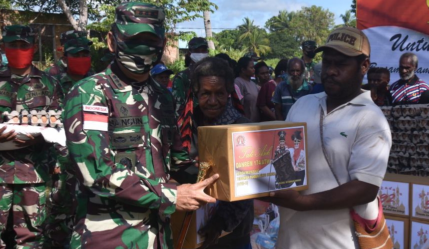 Danrem 174/ATW menyampaikan bahwa pemberian tali asih ini merupakan wujud kepedulian kepada masyarakat di wilayah Merauke yang terdampak Pandemi Covid-19. Pemberian bantuan sembako ini sebagai rasa peduli kepada sesama di tengah pandemi Covid-19 saat ini. Semoga dengan adanya kegiatan ini dapat membantu untuk memenuhi kebutuhan sehari-hari.