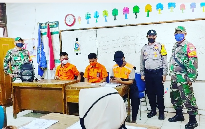 SIDIKPOST| Ahmad Muhrim.,Kepala Desa Pangkalan Didampingi Oleh Bripka Willy Bhabinkamtibmas Desa Pangkalan (Polsek Teluknaga) Beserta Serda Ayub Babinsa Desa Pangkalan Dan Serda A Adnan (Koramil 01/Teluknaga), Melaksanakan Kegiatan Pemantauan Dan Pengawasan Pembagian Bansos BLT (Bantuan Langsung Tunai) Tahun 2020 Sebesar Rp 600.000,- (Setiap 1 Bulan Sekali Selama 3 Bulan) Dengan Jumlah 711 KK. Bertempat Di SDN 1 Pangkalan Jl.Raya Tanjung Pasir RT 01/RW 01 Desa Pangkalan Kecamatan Teluknaga Kabupaten Tangerang.(22/05/20)