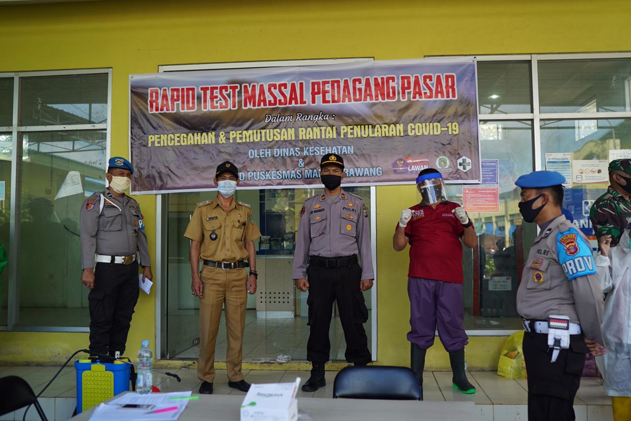 KUKAR – Kepolisian Resort (Polres) Kukar, memberikan pengamanan ketat dalam kegiatan rapid test covid-19 terhadap para pedagang Pasar mangkurawang yang dilakukan oleh Dinas Kesehatan (Dinkes) dan UPTD Puskesmas Mangkurawang, Selasa (9/6/2020).