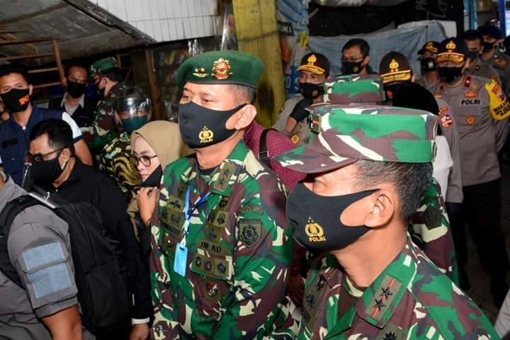 SIDIKPOST| Jakarta. Dalam rangka memantau kesiapan masa menuju new normal Malang Raya, Panglima Divisi Infanteri 2 Kostrad Mayjen TNI Tri Yuniarto, S.AP., M.Si., M.Tr (Han), mendampingi Panglima TNI Marsekal TNI Hadi Tjahjanto, Kapolri Jenderal Polisi Idham Aziz, Pangkogabwilhan III Letnan Jenderal TNI Ganip Warsito , S.E., M.M. dan Gubenur Jatim Dra. Hj. Khofifah Indar Parawansa, M.Si. meninjau Pasar Singosari terkait kesiapan penerapan disiplin protokol kesehatan menuju new normal. Singosari, Malang, Sabtu (20/6/2020). berapa hari yang lalu