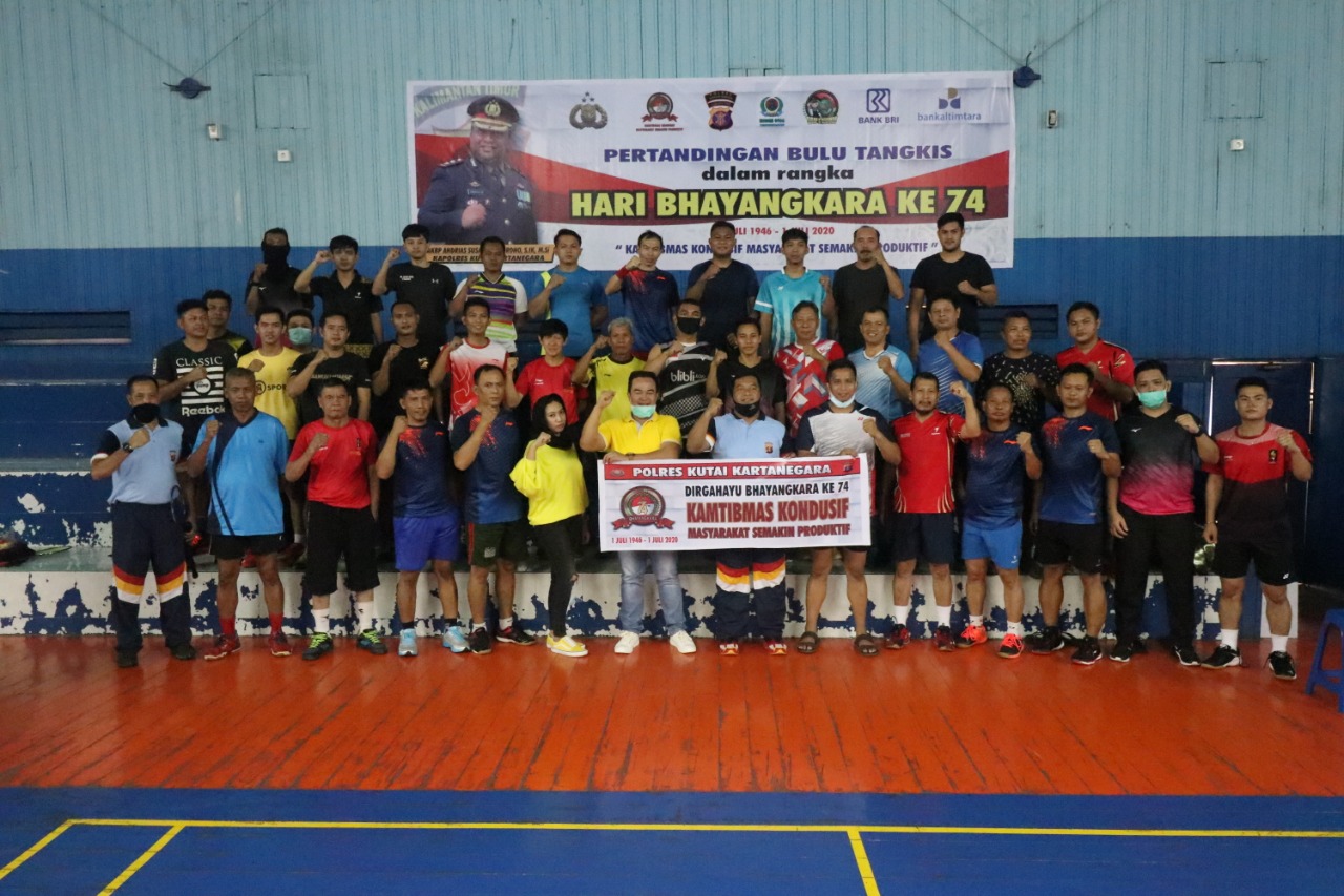 SIDIKPOST| kukar – Sambut Hari Bhayangkara Ke-74 yang tinggal menghitung jari, Polres Kukar menggelar pertandingan Bulutangkis di Gedung Veliny Tenggarong, Sabtu (27/06/2020).