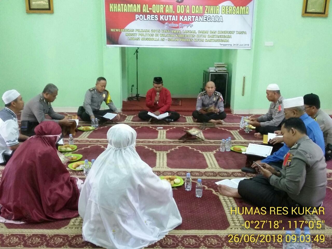 KUKAR – Bertempat di LANGGAR ASSALAM Polres Kutai Kartanegara telah dilaksanakan Khataman Al-Qur’an, Zikir dan Do’a Bersama oleh Anggota Polres Kutai Kartanegara memasuki hari ke 3.