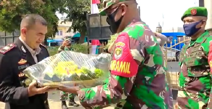 SIDIKPOST| Bertepatan Dengan Hari Bhayangkara Ke-74 ,Kapten CPM Djalaluddin Putra Danramil 01 Teluknaga Beserta Anggota Koramil 01 Teluknaga ,Pada Senin 01 Juli 2020 Melakukan Kunjungan Ke Kantor Polsek Teluknaga ,Dengan Memberikan Kejutan Berupa Ondel Ondel Yang Merupakan Asli Kebudayaan Betawi Dan Tumpeng Serta Spanduk Ucapan Selamat Hari Bhayangkara Ke-74 .Acara Tersebut Bertempat Di Kantor Polsek Teluknaga Jln Kp. Melayu Desa Kampung Melayu Barat Kecamatan Teluknaga.(02/07/20)